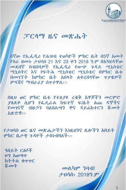 የጥር ወር ፓርላማ ዜና መጽሔት 2018 ዓ.ም